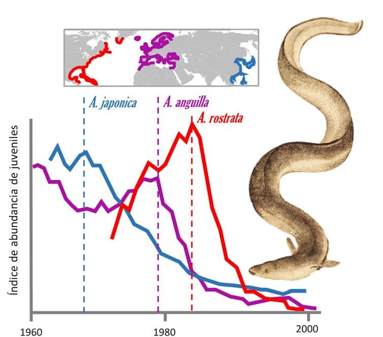 Las especies de anguila más intensamente explotadas y amenazadas son las de zonas templadas del hemisferio norte, además de la europea, la japonesa (A. japonica) y americana (A. rostrata). Hace nada menos que 20 años la Declaración de Quebec hacía un llamamiento urgente para la protección de estos peces. Diez años después la situación no había mejorado en absoluto, y sigue sin hacerlo. Mantener la explotación impedirá cualquier posible recuperación y, finalmente, llevará a la extinción de estos maravillosos animales.
