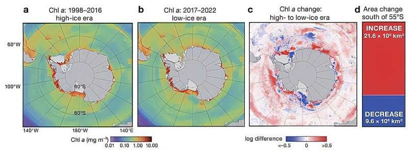 Angus Atkinson et al., Implicaciones de la reciente pérdida de hielo marino antártico para el fitoplancton y los hábitats de alimentación estival de salpas y krill, Marine Ecology Progress Series (2025). DOI: 10.3354/meps15002