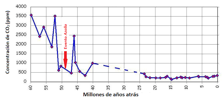 El efecto fue tan grande que durante el evento Azolla estos helechos minúsculos extrajeron decenas de billones de toneladas de CO₂: el 80 % del existente en la atmósfera.